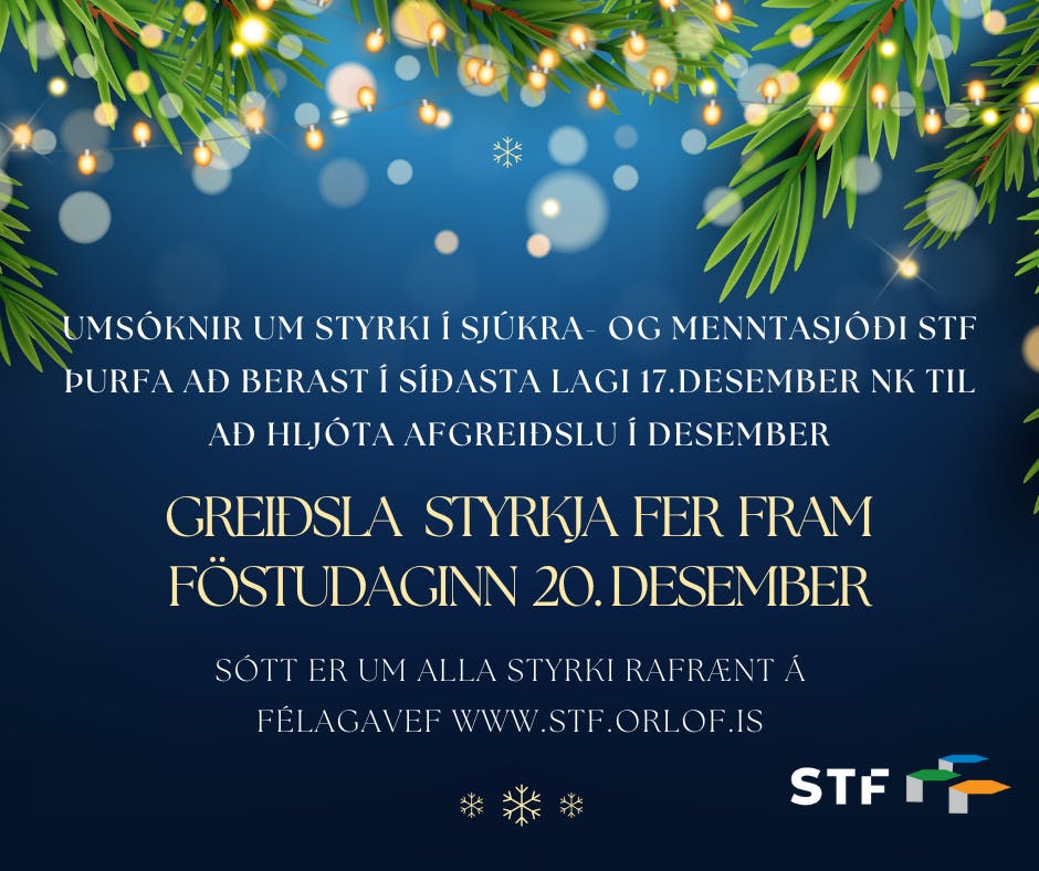 Sjúkrasjóður STF er vel rekinn og er gríðarsterkur. STF hefur ekki þurft að grípa til skerðinga á greiðslum eins og aðrir sjóðir. Sjúkrasjóðurinn á íbúð í Kópavogi sem er ætluð félagsmönnum sem þurfa að sækja sjúkrameðferð til Reykjavíkur. Hægt er að sækja ýmsa styrki vegna heilsubrests í sjúkrasjóð. Þ.a.m heyrnartæki, augnaðgerðir, krabbameinsskoðun og fleira. Sjá nánar inn á mínum síðum.